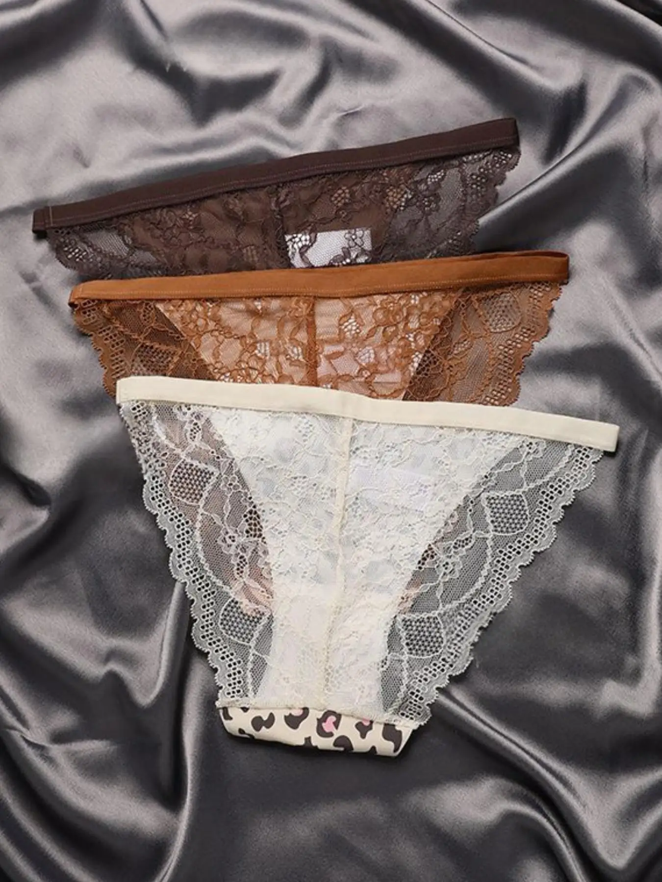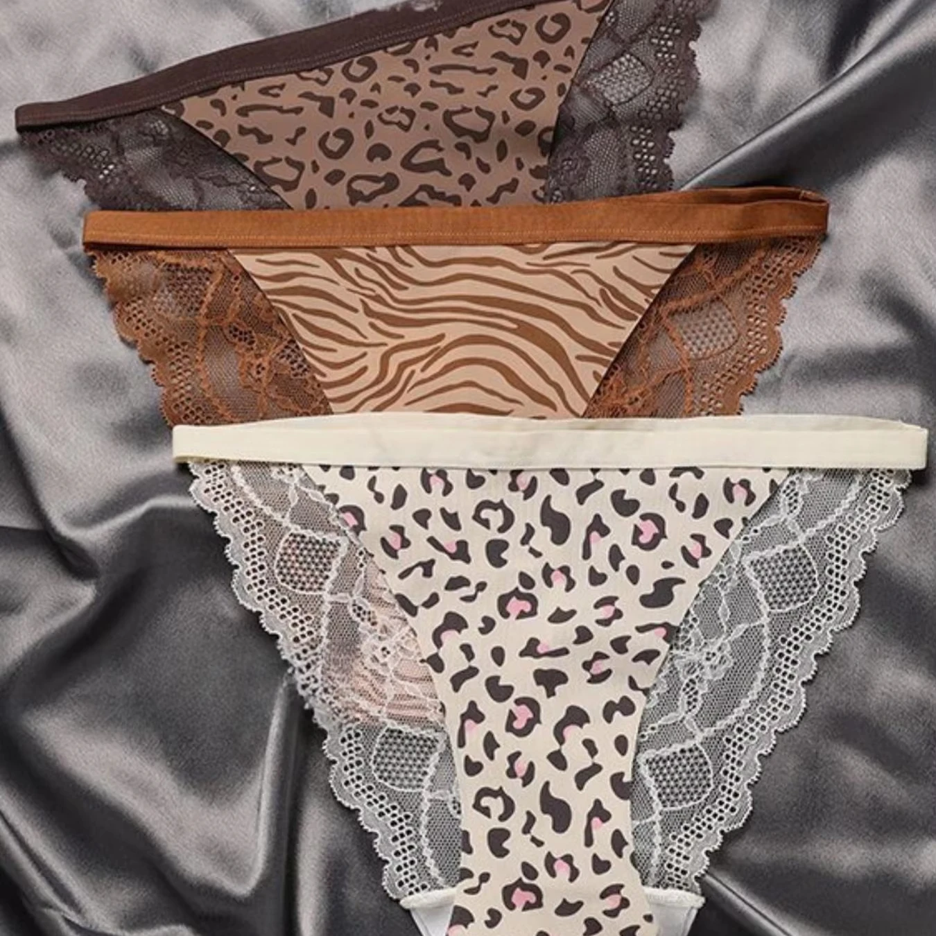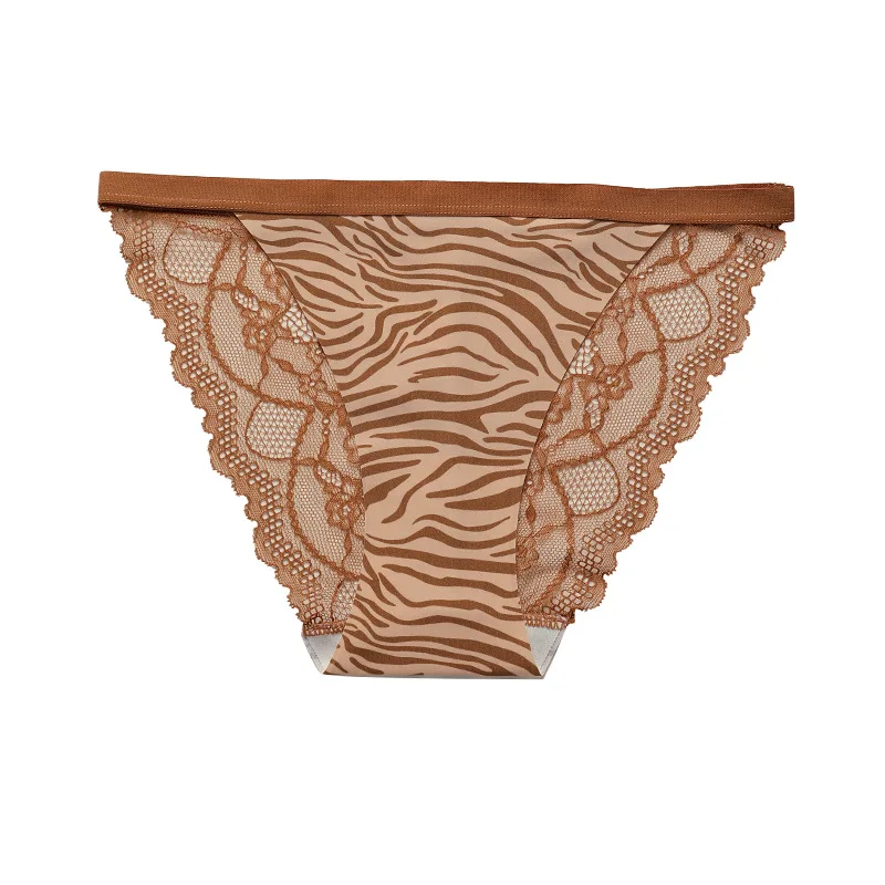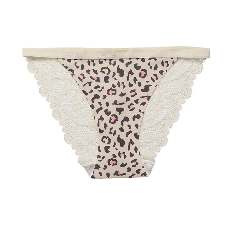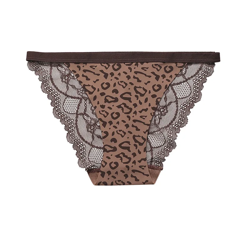JENGS Ice Silk Sexy Temptation Briefs, Women's Sports Fitness Underwear Leopard Print Lace Interior Thongs
